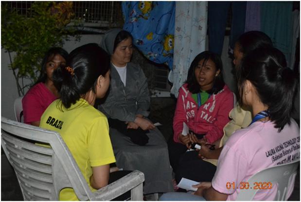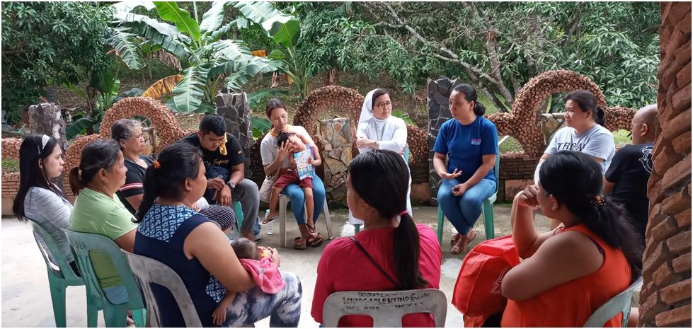The Laura Vicuña Foundation (LVF) composed of the LVF Social Workers, girls and trained Sisters conducted a critical incident stress debriefing (CISD)on January 26, 2020 at the San Lorenzo Ruiz Parish in Taysan, Batangas. The CISD is one of the activities during the Taal Volcano Relief Operations under the Daughters of Mary Help of Christians with the Provincial Educating Community. This psychosocial intervention is designed to help the victim-survivors of traumatic critical eventsto understand and take action towards adjustment and rebuilding rehabilitation. Itis also a process to lessen the impact of a critical incident and prevent further psychosocial problems. The LVF Social Workers led by Sr. Marivic Sta. Ana, Ms. Mercedes Juncia, Ms. Josielyn Hugo, Ms.Rosea Monsay and Mr. Ryan Azucena handled the sessions for the adults and youth which made them share their experiences and stress reactions surrounding the event. The facilitators assisted them to deal positively with the emotional effects of their current situation and identify those who might benefit from additional services and further psychosocial interventions. As for the kids, the play therapy was conducted by Sr. Ana Guerrero assisted by Ms. Virgie Jison, Ms. Verna Soberano and the LVF girls. They were asked to draw anything that would illustrate their feelings towards the incident and to explain their drawings afterwards. At the end, the participants were able to verbalize that they were relieved by the CISD because there were people who were able to listen to them.