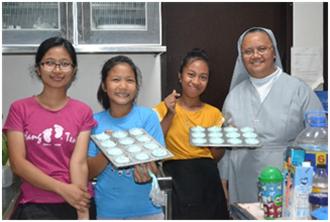 Sisters Marivic Sta. Ana, FMA and Analyn Guerrero, FMA take turns in organizing film reviews, analysis,reflections and discussions. These are valid fora for our girls to benefit more from what they watch and not remain in the superficial level of just being entertained. ANNE with an E, Merlin, The Big Flower Fight, and Marvel Movies were but the several films they have seen. The life skill and SYM sessions continue, fortunately, the girls have more time for these kinds of formative meetings which enunciate interior growth as it also broaden their sense of community building and peer leadership. Aside from this, the girls are also given the chance to have occupational training which could serve as additional learnings that they can use when they leave the Center. Sr. Maria Bui ,FMA missionary to Papua New Guinea, has given them online sessions on hair grooming, hygiene and cutting. Sr. Clara Alacapa, FMA with Ms. Javierna Soberano, Judith Cuadro and Anjodelyn Sebastian have begun peer- teach cooking and cakes, cookies and bread baking.Ginalyn Castanares has spearheaded paper making and recycling while Marifel Villaver has done Ice Cream making tutorial. Apostolic daring and determination to empower the girls have made each one of us accomplish little yet significant things while in Quarantine. We are ever grateful that we remain healthy, strong and caring for each other.