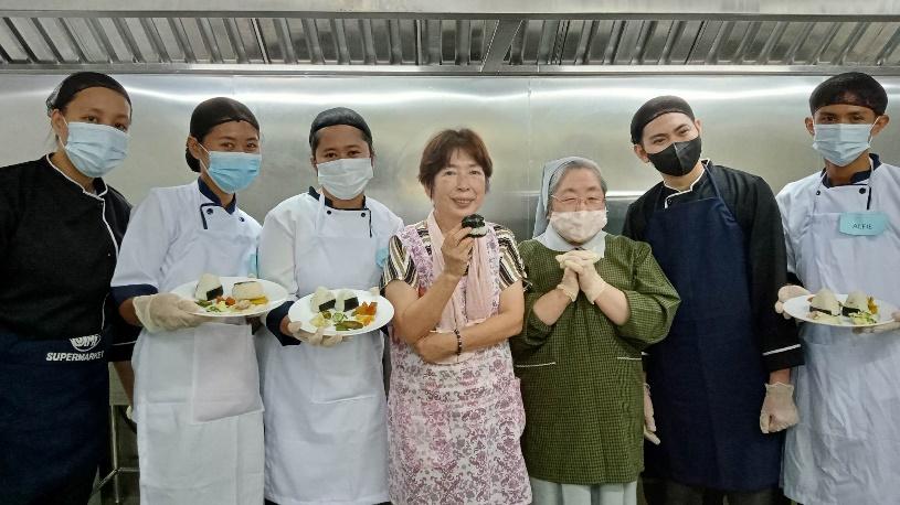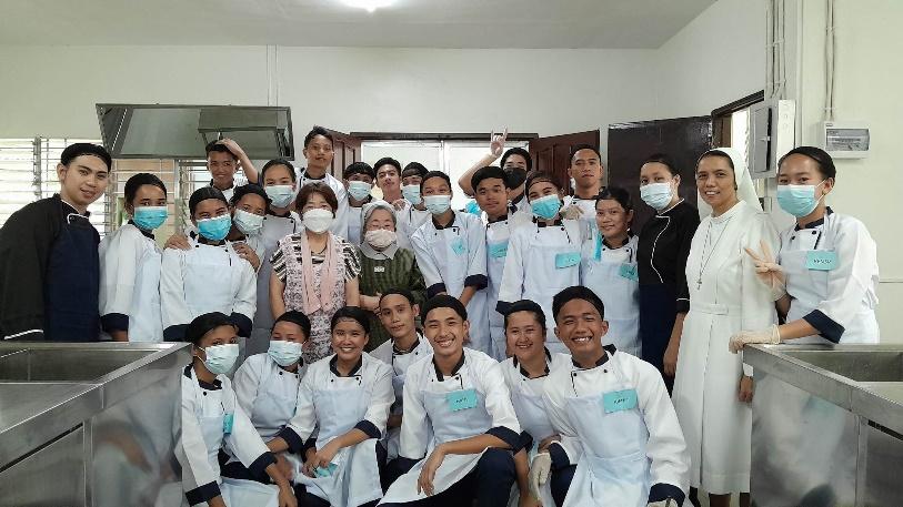 May 14. The Laura Vicuna Foundation Inc. Palawan community celebrated Mothers’ Day, Feast of Mo. Mazzarello, and birthday celebration of all May birthday celebrants, especially our beloved Sr. LG & Sr. Tita! On these special occasions, everyone did their part to prepare a delicious meal for lunch. Nay Ophil prepared fried and roasted calamares and broiled fish using the large fresh fish and enormous squid that Tay Fred had given him upon his return from his fishing expedition. While Tom, our VIDES volunteer, grilled hot dogs, the staff chipped in to buy a cake, while Rubelyn and the Learners made Kangkong shakes and halo-halo. The barbecue, rice, and other dishes were a group effort.