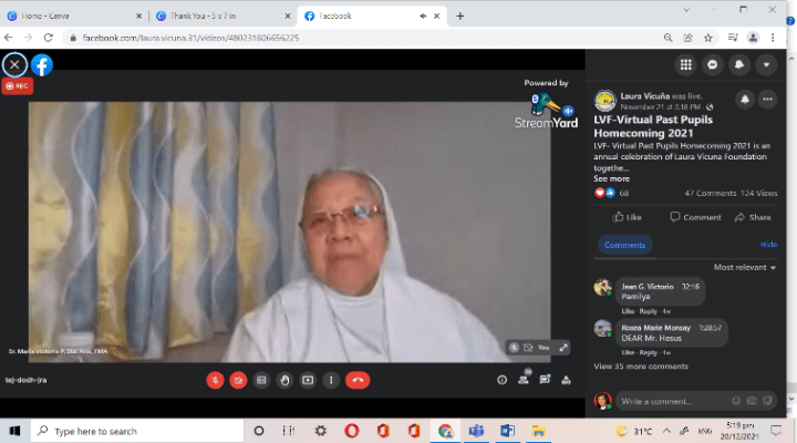 November 23. On the Feast of Christ the King, LVF Past Pupils and Past Vicuñans gathered to celebrate its yearly Homecoming with the theme: “Tuloy ang Kwento sa Tahanang may Love and Hope” (The Story Continues at the Home where Love and Hope Is!). Once a year, this event reunites the Vicunians, offering them an opportunity to reminisce and connect by sharing their recent life changes, developments, and experiences. It is coming back to one’s roots-a Home and a family at LVF. Rev. Fr. Rey Paglinawan presided the Holy Mass, signaling the start of the program and activities. Sr. Marivic, FMA expressed her joy seeing the Vicunians returning home once more.